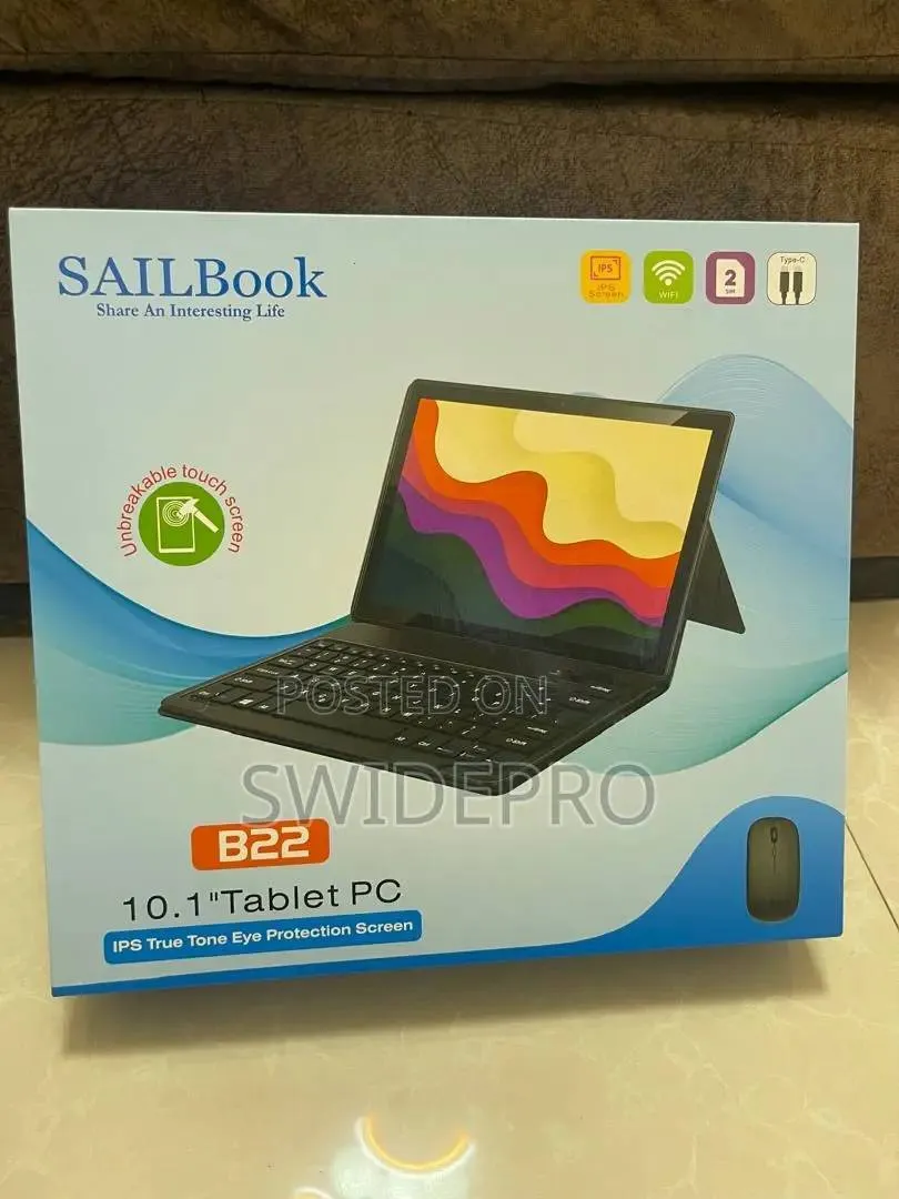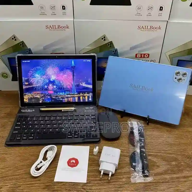 The SAILBook B10 is a 10.1-inch tablet PC with 6GB of RAM and 256GB of storage. Key features include: Display: 10.1-inch screen Memory: 6GB RAM and 256GB storage . Operating System: Runs on Android, supports multiple languages Connectivity: Dual SIM slots, Dual Bluetooth Features: Face unlocking, IPS screen, suitable for calling, gaming, learning, and office work Included Accessories: Often comes with a keyboard, mouse, charger, and screen protector Durability: Some models include a protective rubber sleeve Target Audience: Suitable for kids, teenagers, students, and professionals